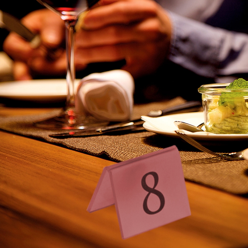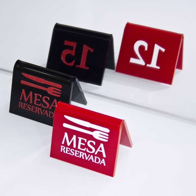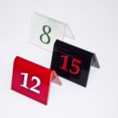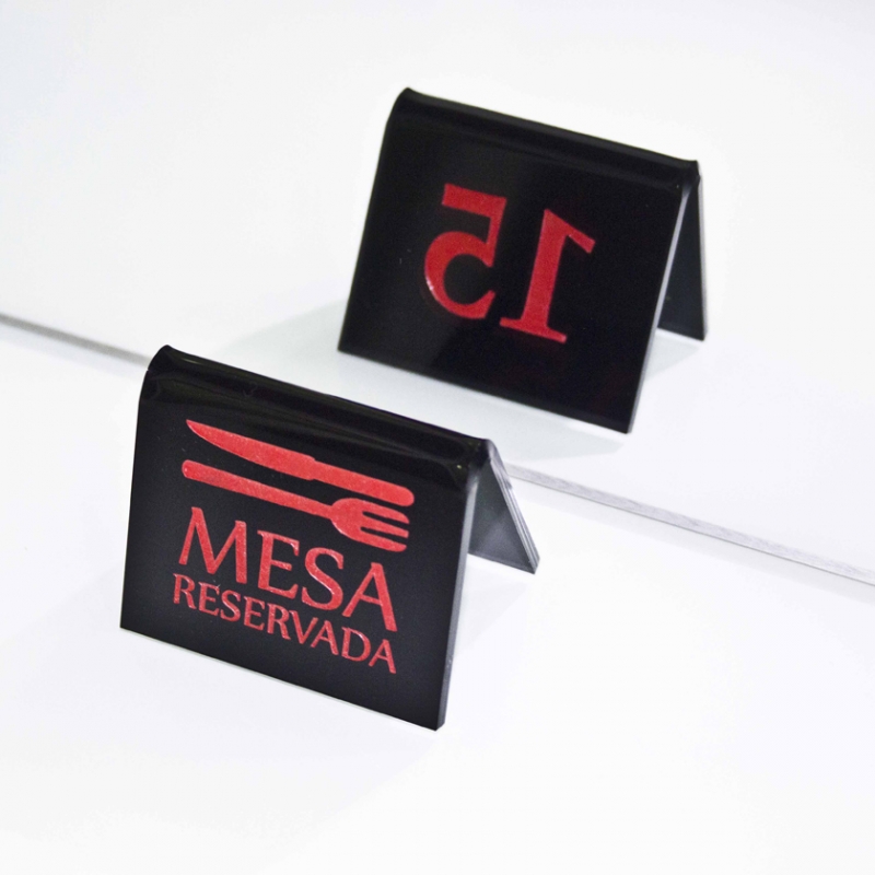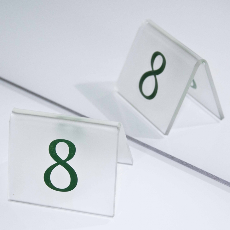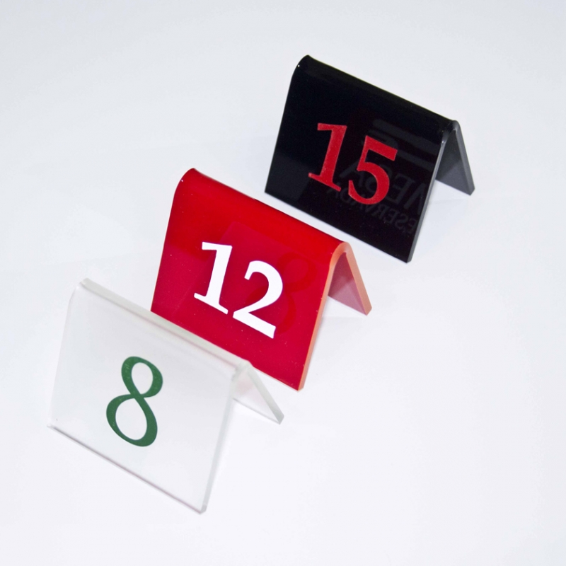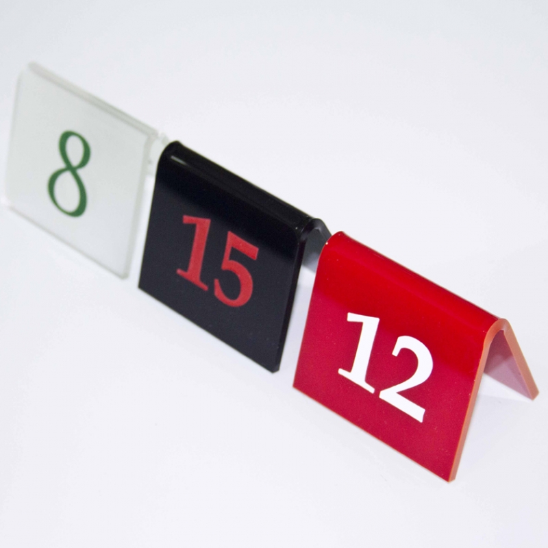 Numeradores para las mesas de tu restaurante u Hotel, en formato doblado. Todos nuestros rótulos están fabricadas en metacrilato de 3mm de grosor.